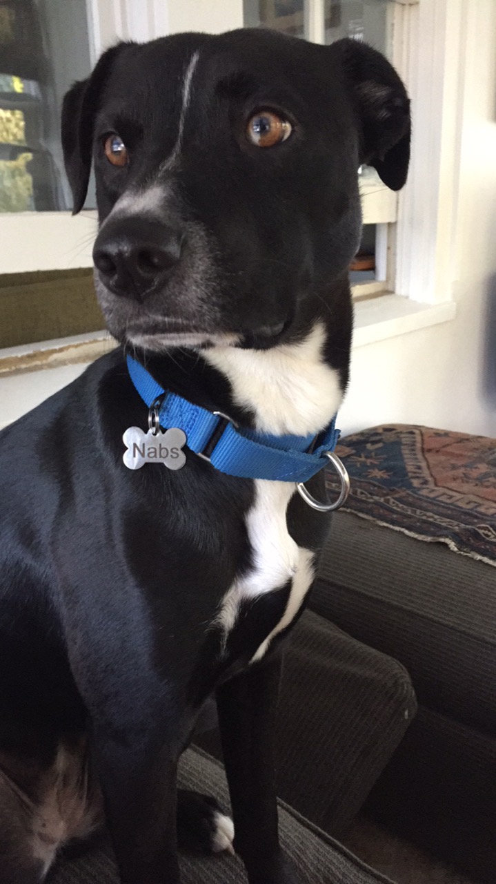 Nabs is a border collie/lab mix, 35 pounds, and active pup. She is super friendly and almost cat-like, so I took an immediate liking to her. The last few months I have really bonded with her and have totally fallen in love.